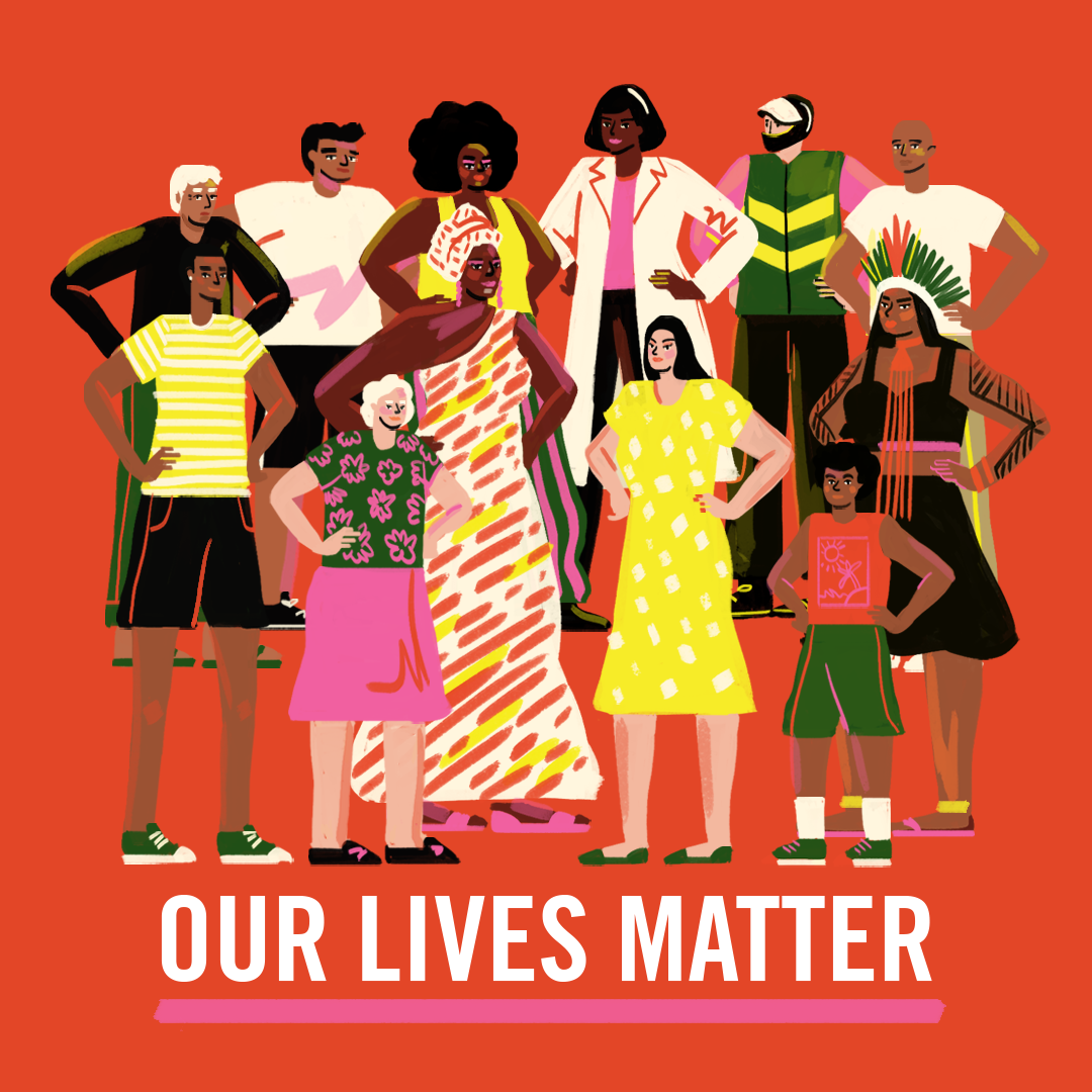 I designed the visual identity and also made illustrations for the Amnesty International Brazill campaign Nossas Vidas Importam (Our Lives Matter). The campaign, in the context of the COVID-19 pandemic, warns Brazilian authorities that nobody should be left behind in the response to the crisis. I created illustrations to represent populations that face greater risks of adverse impact from the pandemic: people living in favelas, Indigenous peoples, people deprived of their liberty, members of Afro-descendant communities, health professionals, workers in the informal sector, women and older people living in institutions such as care homes.