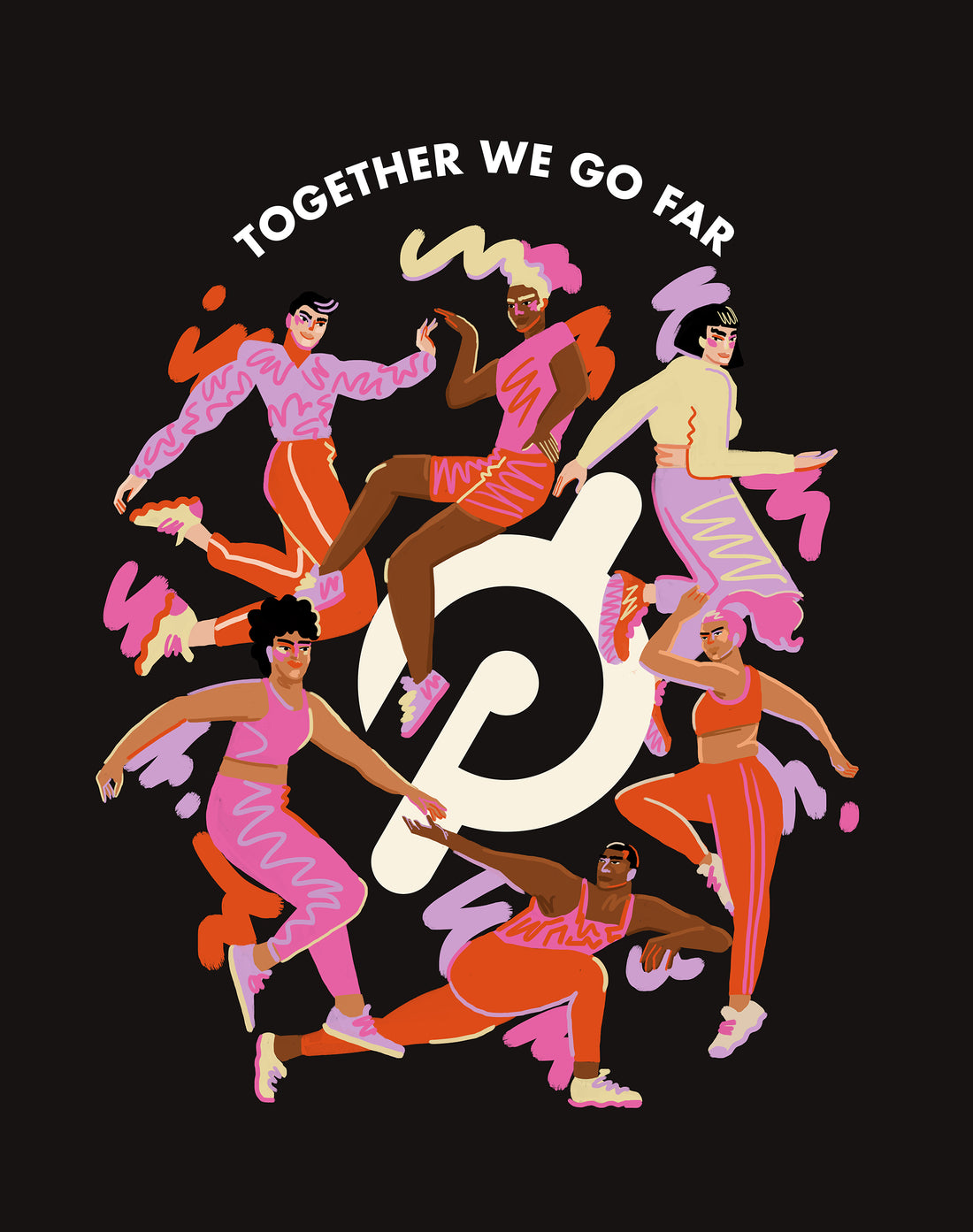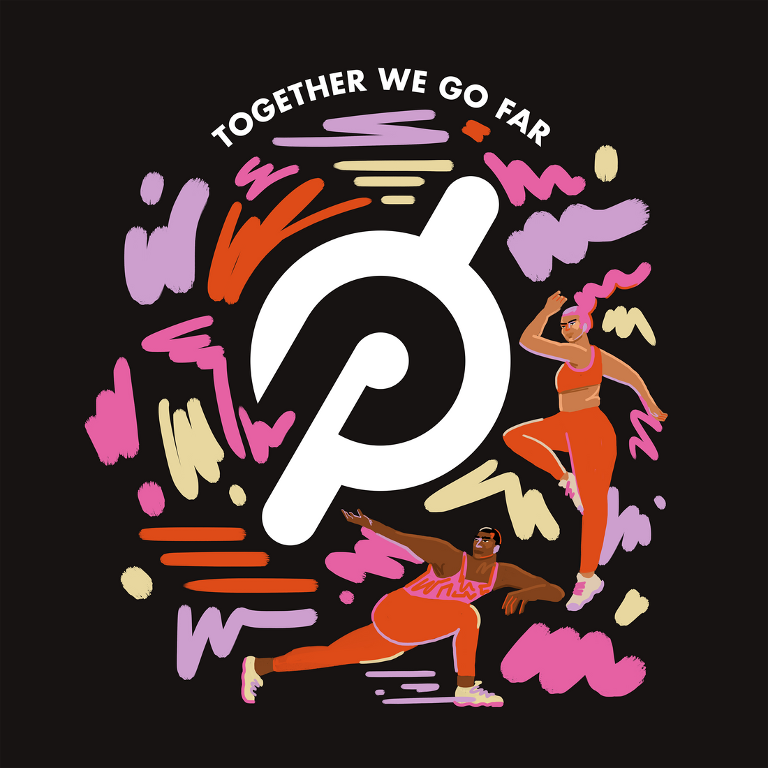The collection tagline was "Together We Go Far" and the idea was for me to illustrate people that would represent the Peloton latinx community. I was also inspired by movement and Peloton classes.