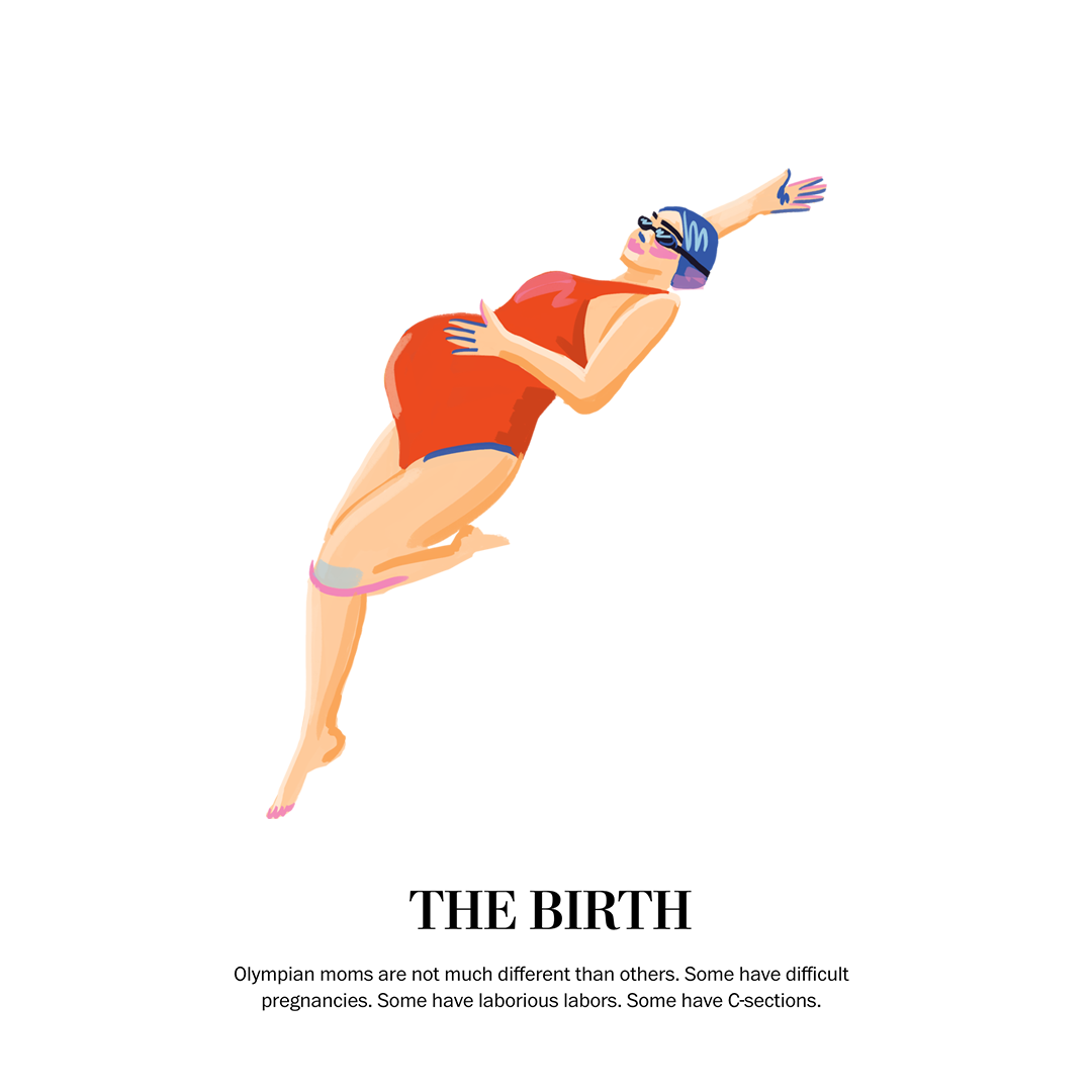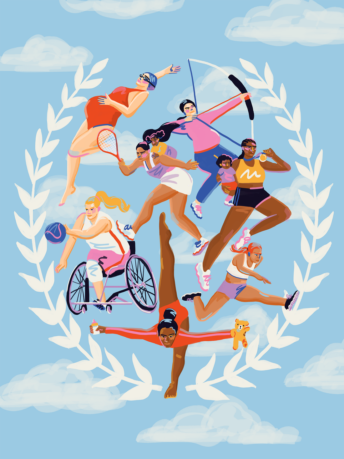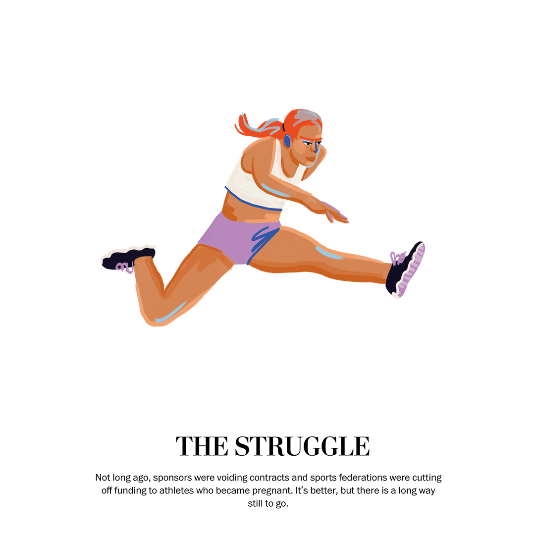Illustration for The Washington Post for an article about the changing relationship between pregnancy and moterhood for Olympic athletes.