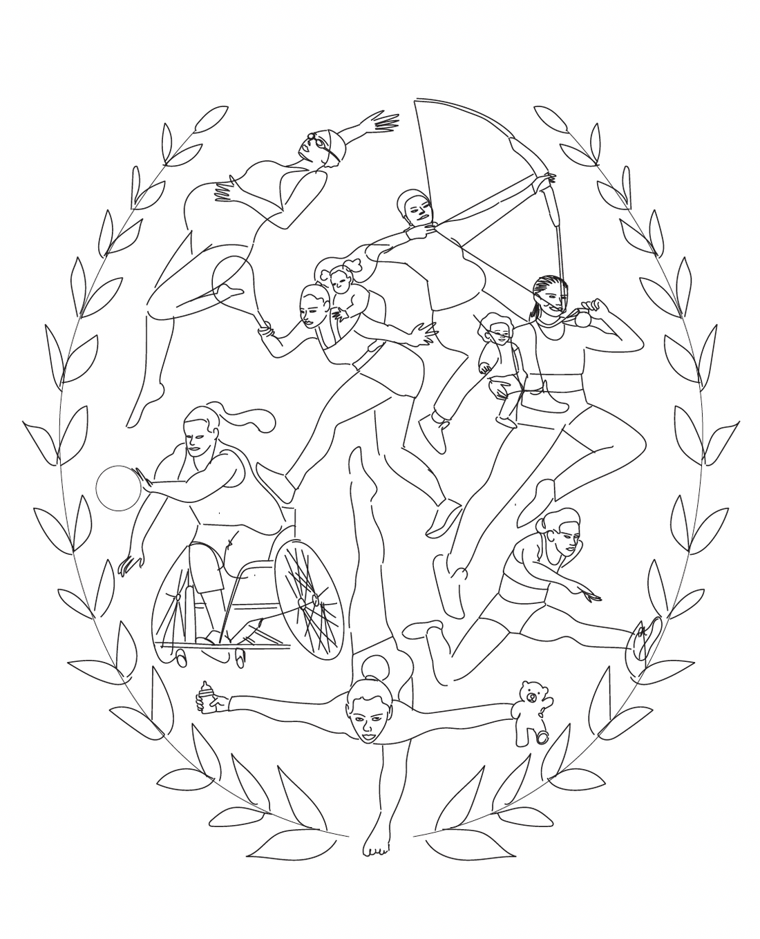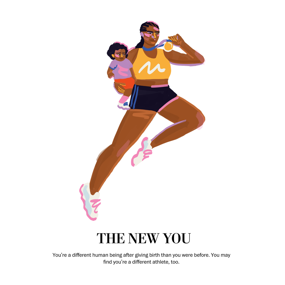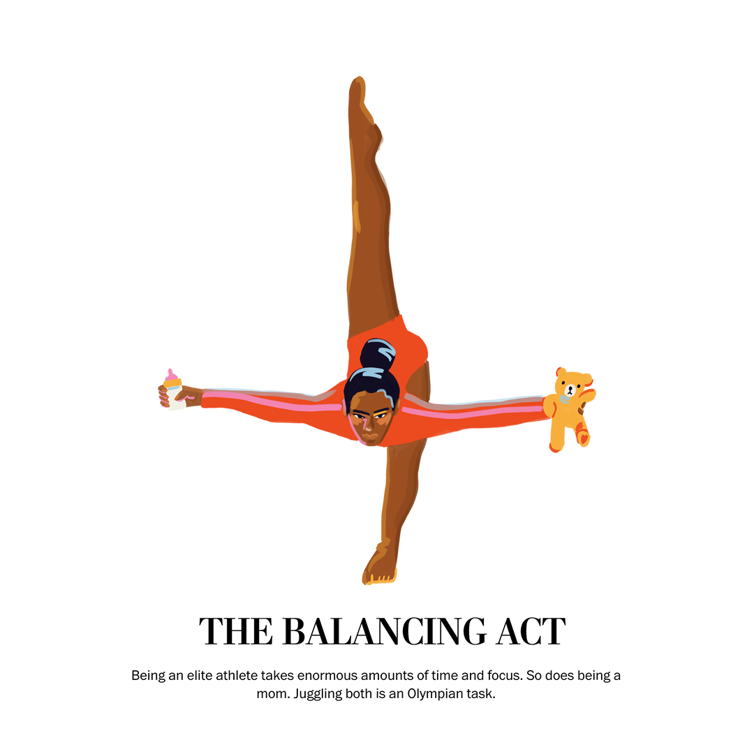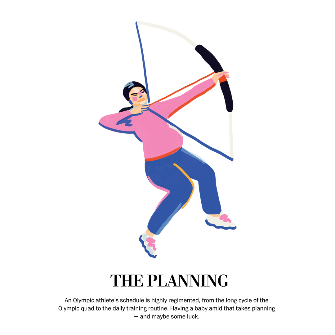 Illustration for The Washington Post for an article about the changing relationship between pregnancy and moterhood for Olympic athletes.