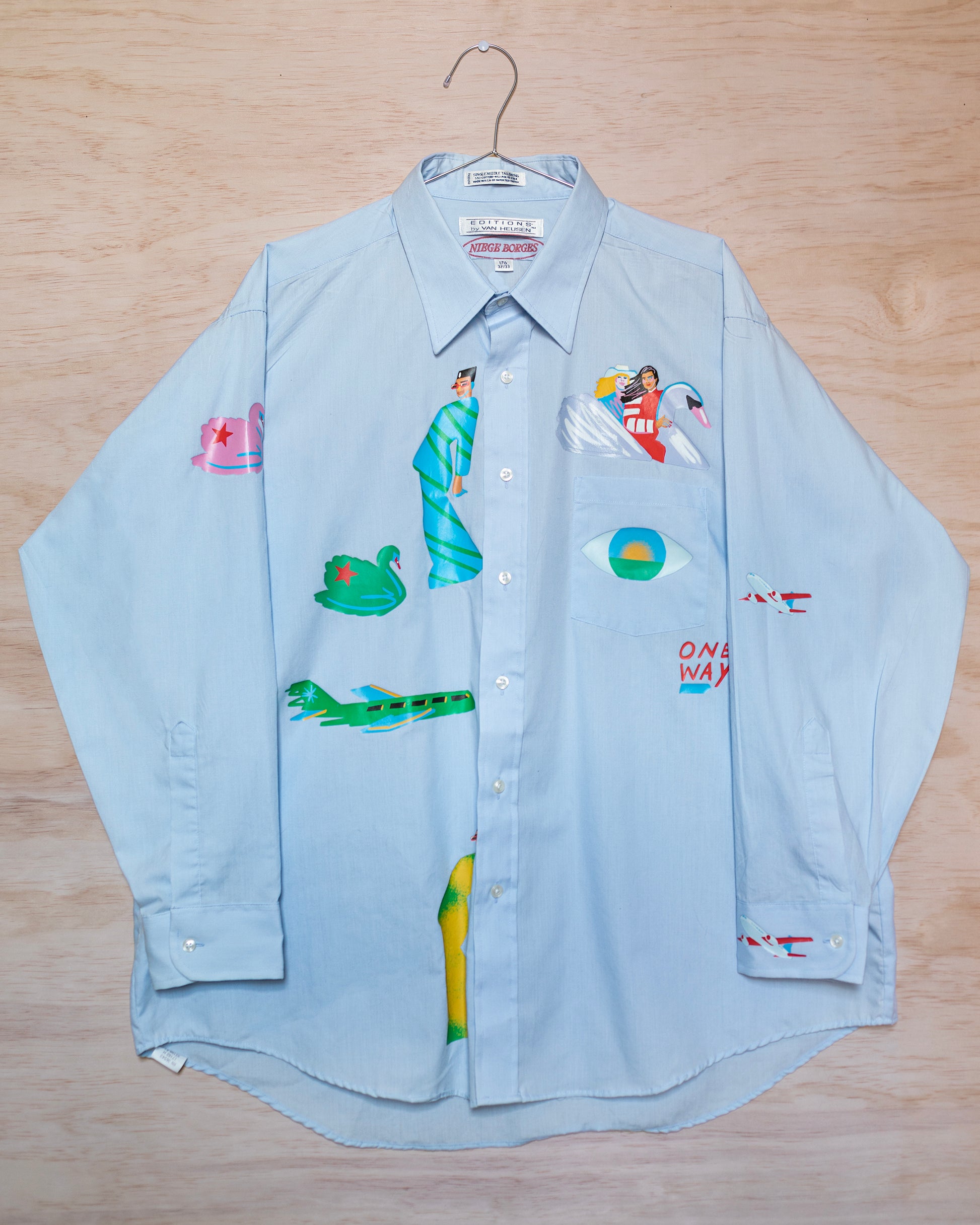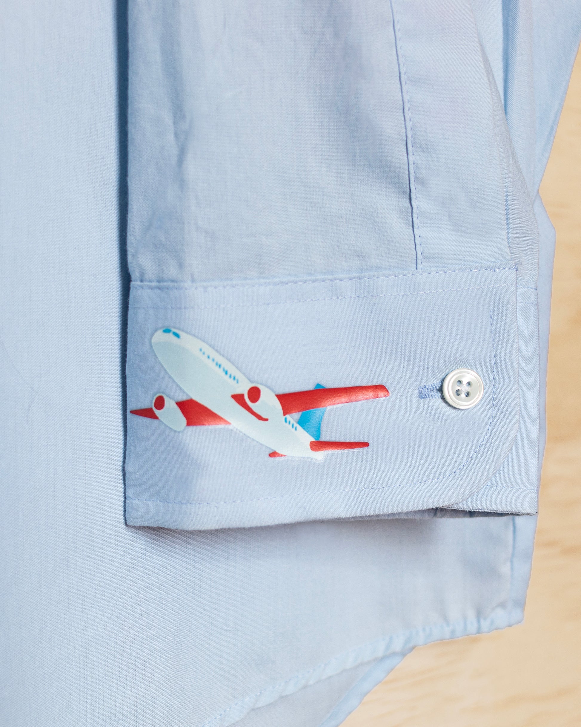 Light Blue Shirt with Plane on Sleeve