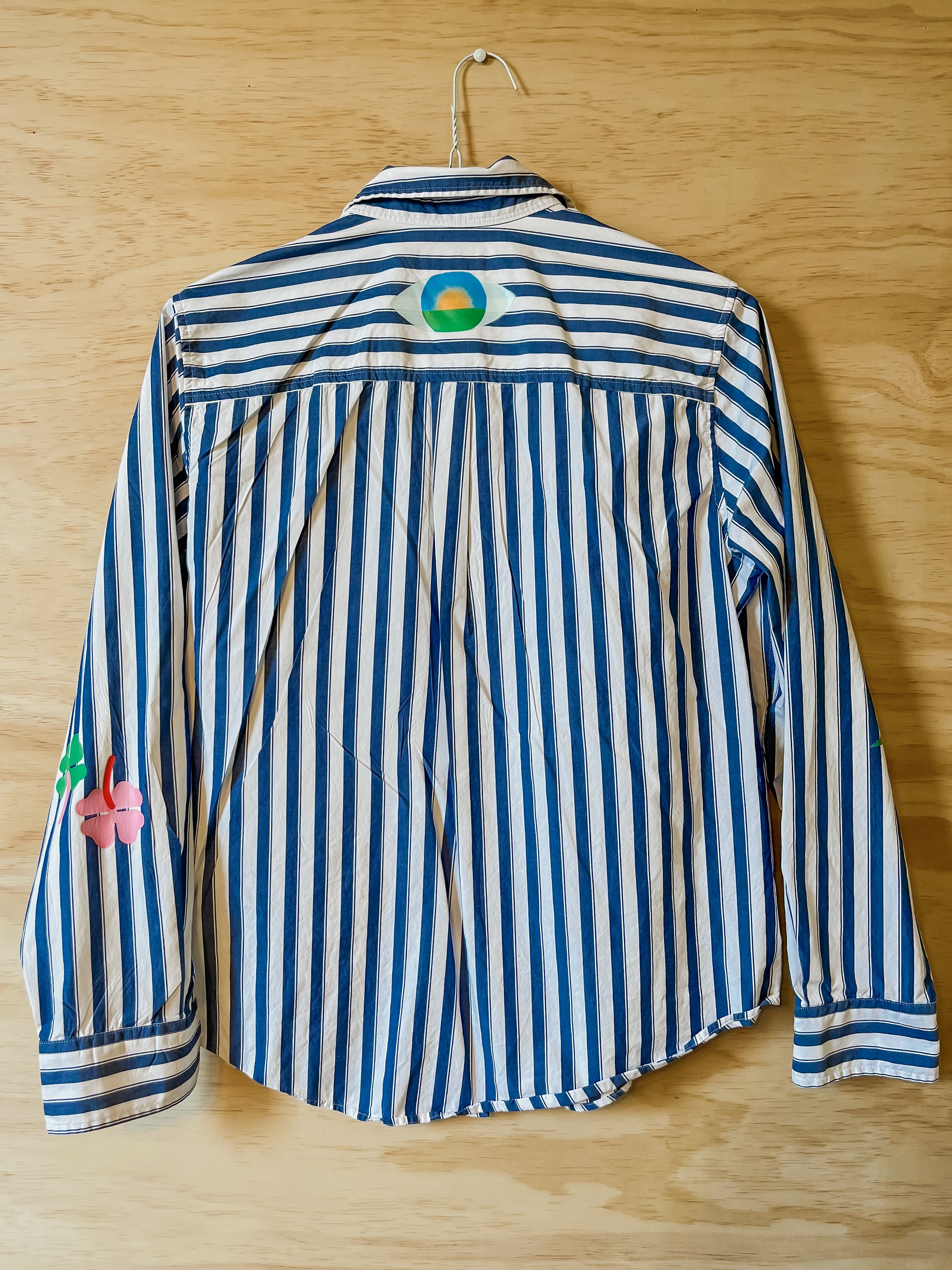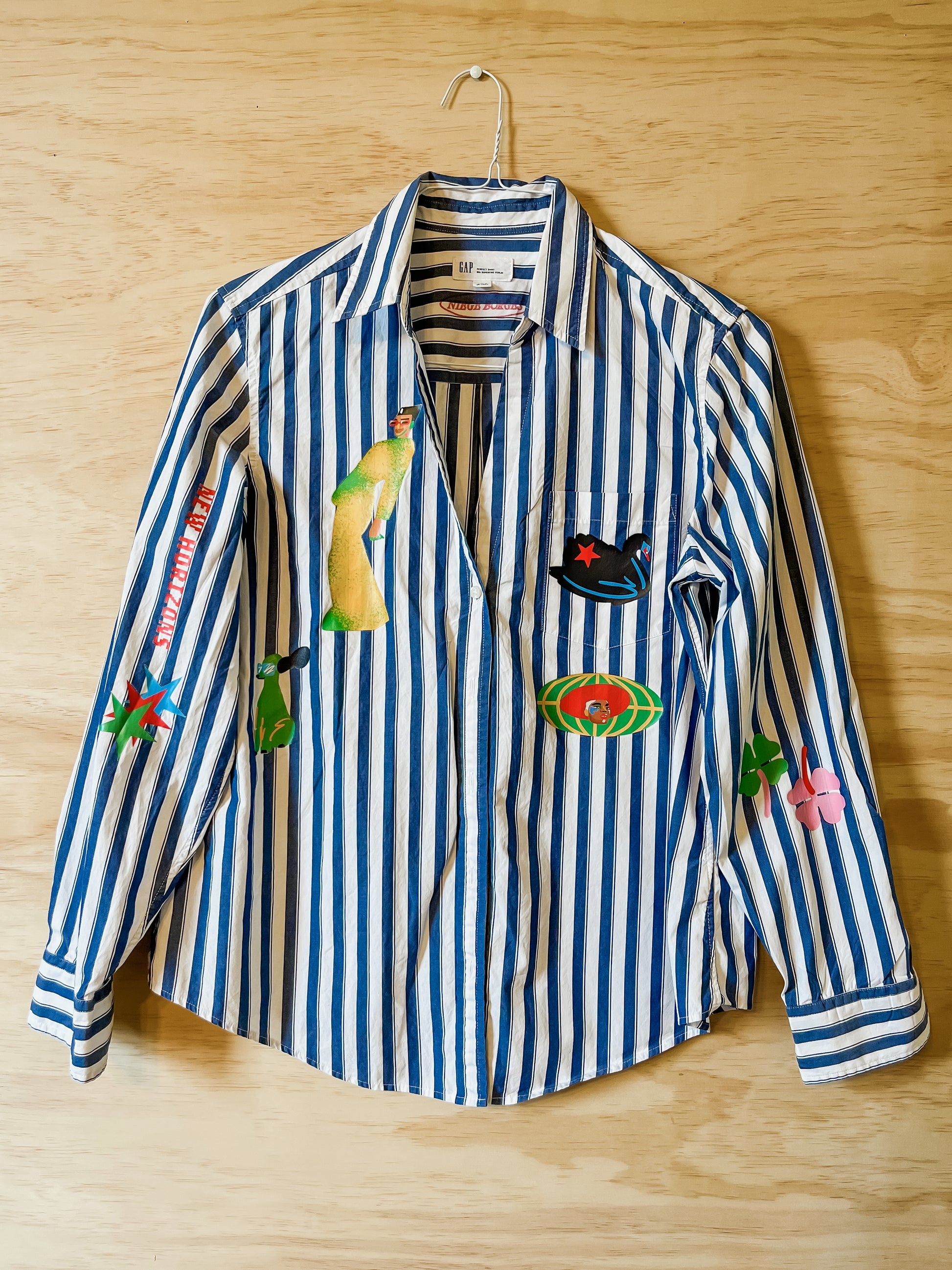 Explore New Horizons with this one of a kind upcycled shirt. Inspired by the joy of travel, perfect for wanderlust-ers—or anyone longing to break out of their daily routine. All shirts were thrifted in New York and in Brazil and printed by me in New York