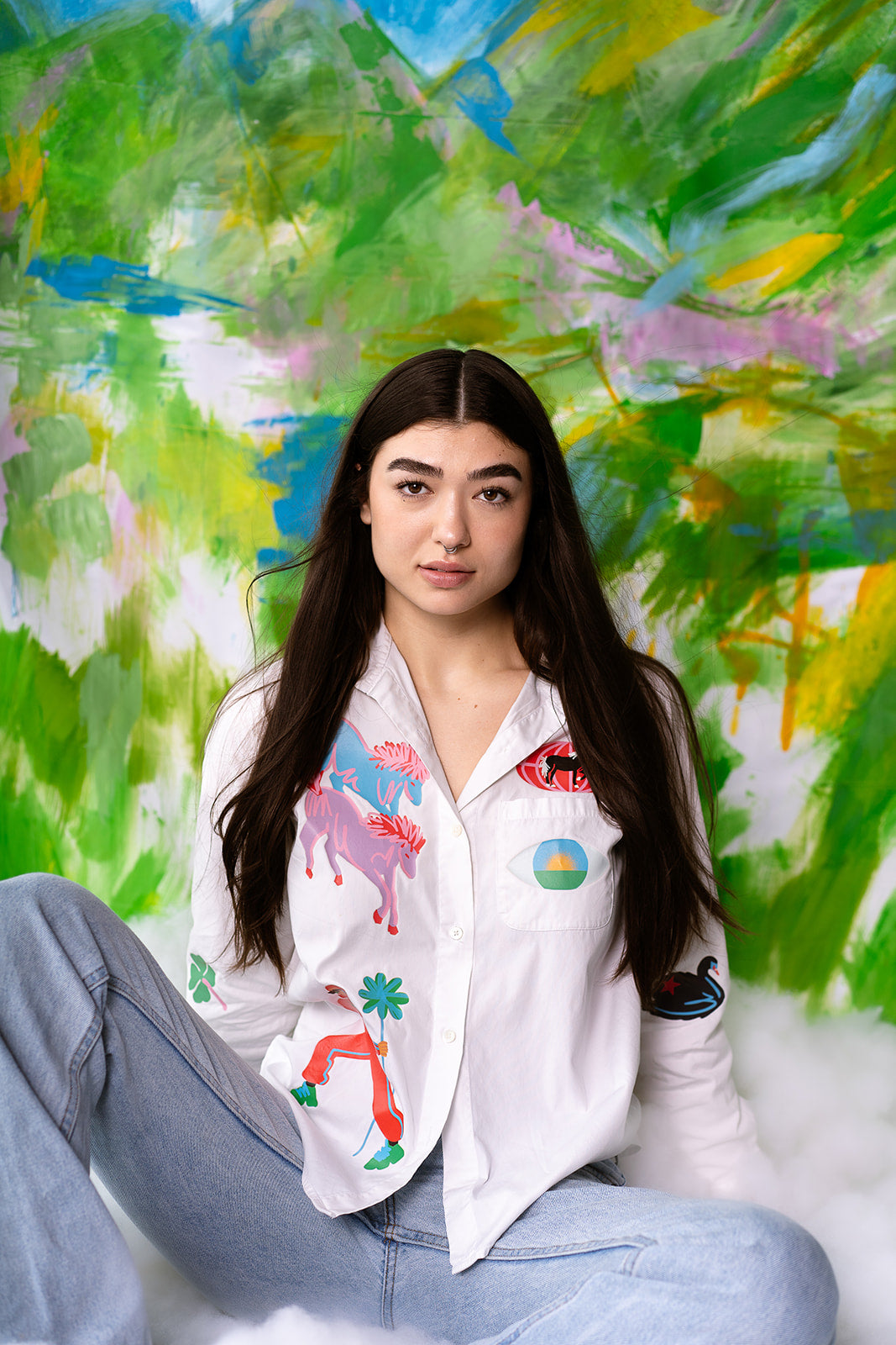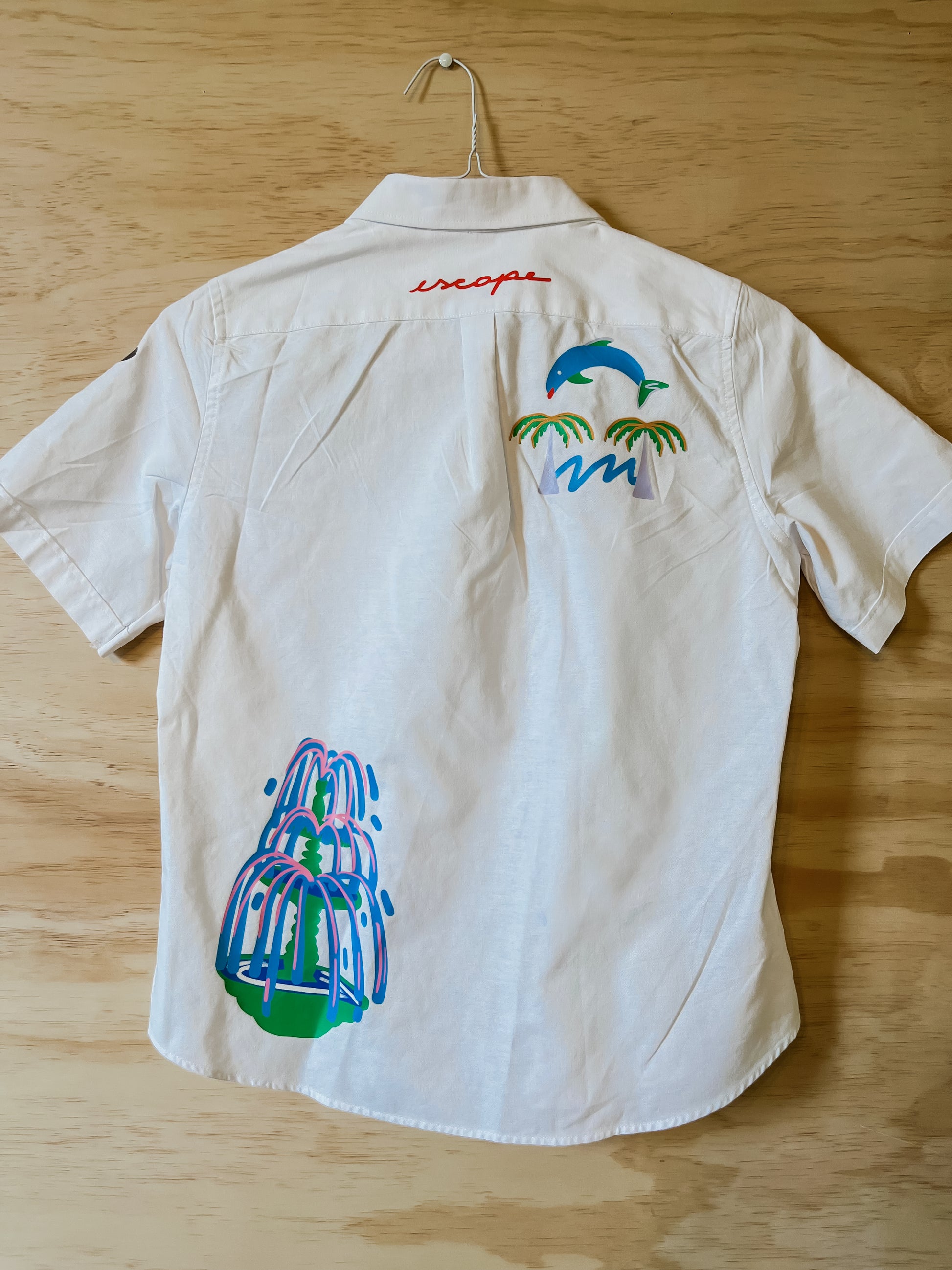 Explore New Horizons with this one of a kind upcycled shirt. Inspired by the joy of travel. All pieces are one of a kind - thrifted in New York and in Brazil and printed by me in New York