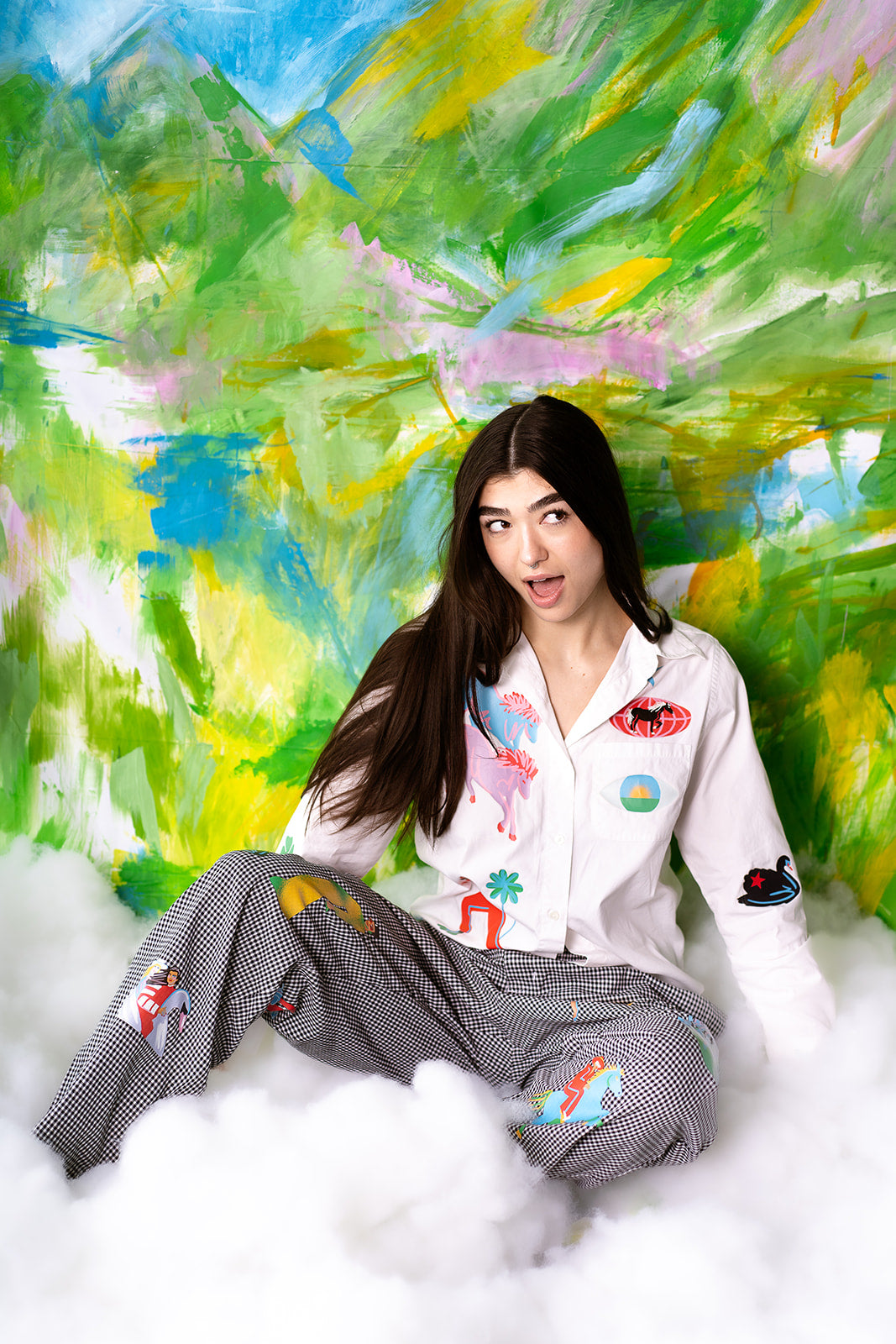 Polka Dot and Stripes with Fountain on Back