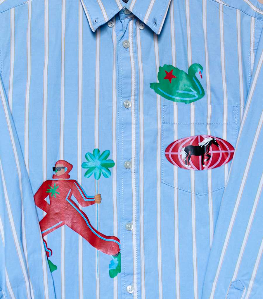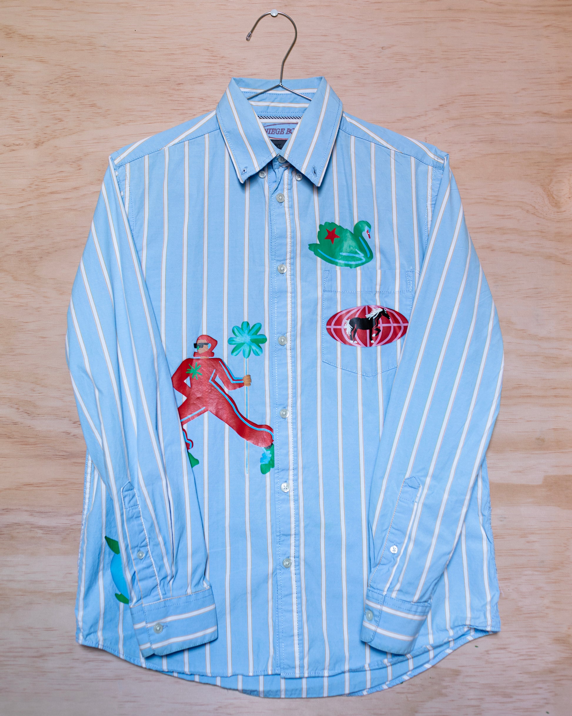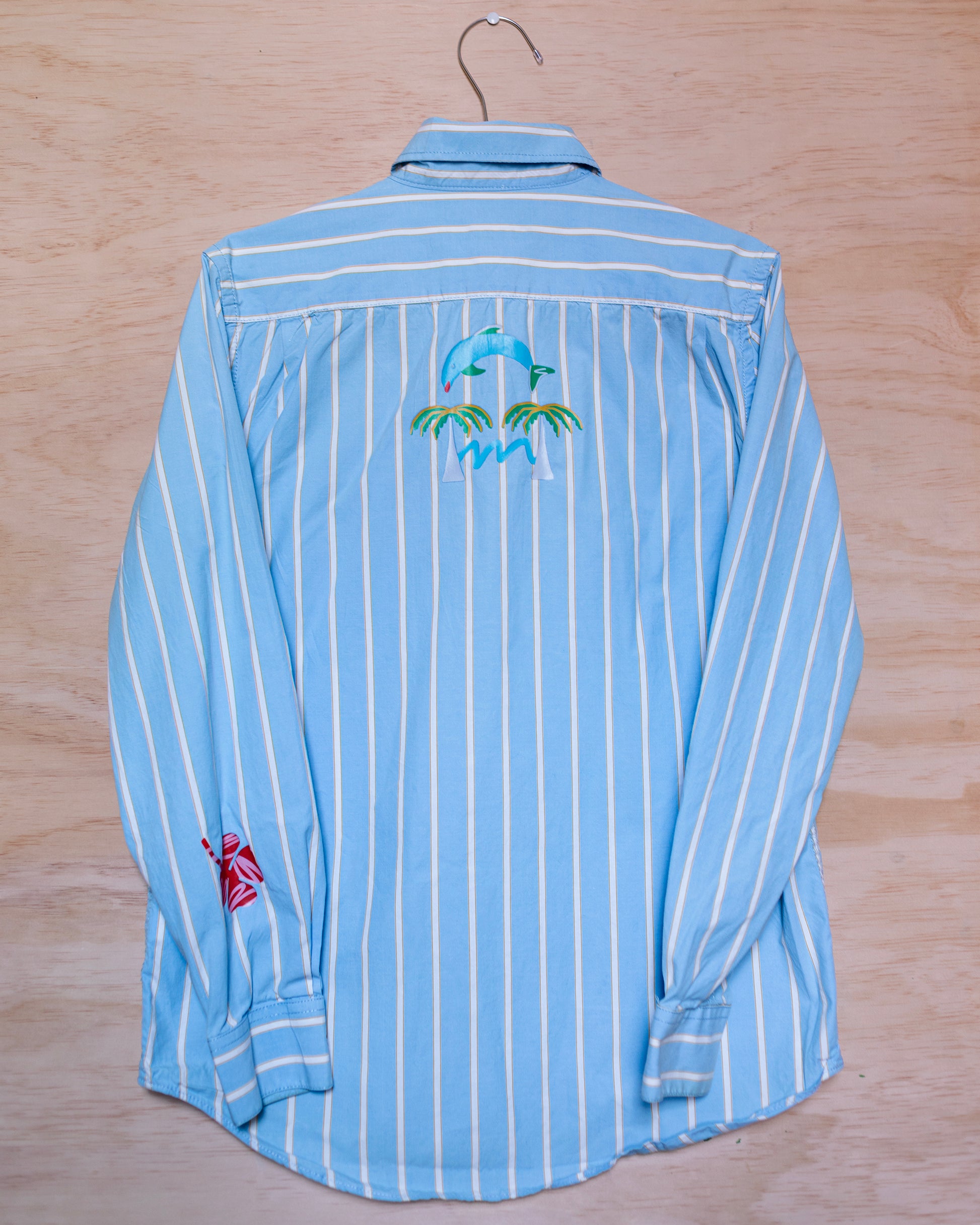 Explore New Horizons with this one of a kind upcycled shirt. Inspired by the joy of travel. All shirts are one of a kind - thrifted in New York and in Brazil and printed by me in New York