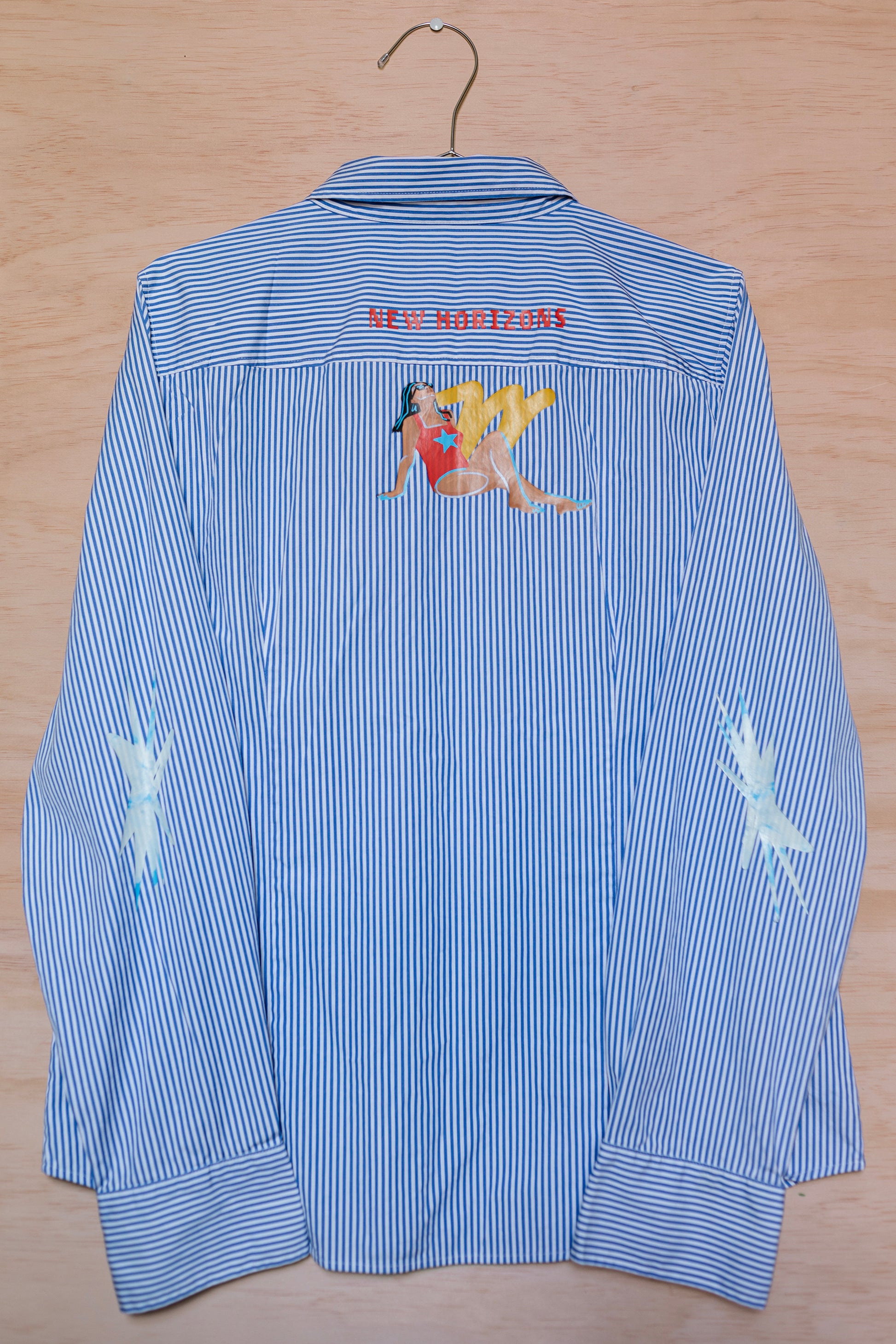 Explore New Horizons with this one of a kind upcycled shirt. Inspired by the joy of travel, perfect for wanderlust-ers—or anyone longing to break out of their daily routine. All shirts were thrifted in New York and in Brazil and printed by me in New York