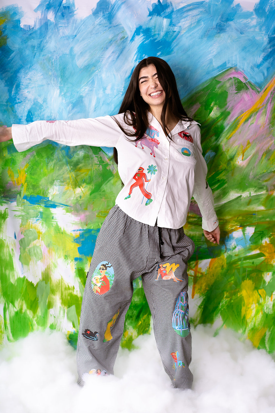 Explore New Horizons with this one of a kind upcycled shirt. Inspired by the joy of travel. All pieces are one of a kind - thrifted in New York and in Brazil and printed by me in New York